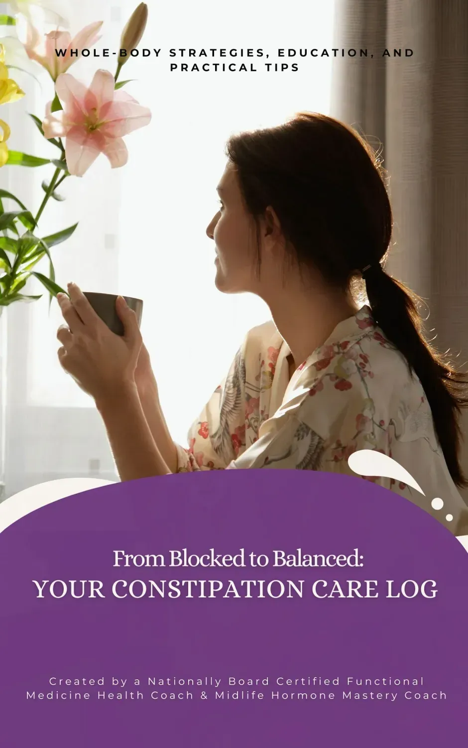 The Constipation Care Log is a 30-page, step-by-step system designed to help you go from blocked to balanced, gently supporting your body to move freely again.